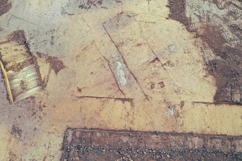 Although traces of human presence date back to the Late Bronze Age, it is during the La Tène period (circa 400–30 BCE) that the first clearly structured settlements emerge. These early farming communities organized their land using ditched enclosures, which varied in shape depending on the phase. Earlier examples were curvilinear, while later ones adopted more rectilinear, quadrangular layouts, reflecting changing land-use strategies and possibly social organization.